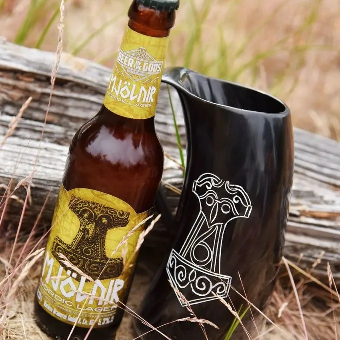 Dieser schöne Hornbecher ist handgefertigt aus Büffelhorn, poliert und graviert. Das Innere ist mit einem Lack versehen, sodass Sie kalte Getränke davon trinken können. Verwenden Sie diese Tasse für LARP, Festivals oder genießen Sie Ihr Lieblingsgetränk zu Hause. Es ist auch ein wunderschönes Dekorationsstück und sehr schön als Geschenk zu geben. Die Tasse ist mit einem Mjolnir eingraviert. Dies ist der Hammer von Thor, der Wikingergott von Donner und Kraft. Nach der nordischen Mythologie wurde Mjolnir vom Zwergbrokkr geschmiedet und verfehlt nie seine Marke, nachdem er geworfen wurde. In der modernen Gesellschaft ist das Mjolnir ein Symbol des Heidentums und Asatru.