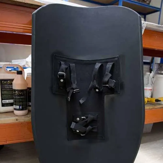 Dieses LARP Schild ist auf historische Schilde aus, dass im Mittelalter verwendet wurden. Dieser Schirm wird geliefert ungefärbten und undecorated ohne Latex-Beschichtung, so dass Sie es ganz nach Ihren eigenen Wünschen dekorieren können. Der Schirm ist mit einem Rand und Imitations Nieten konstruiert. Zum Beispiel können Sie den Rand in Stahlfarbe oder Goldfarbe malen. Der Schirm hat drei Riemen an der Rückseite, so dass Sie es bequem halten können.