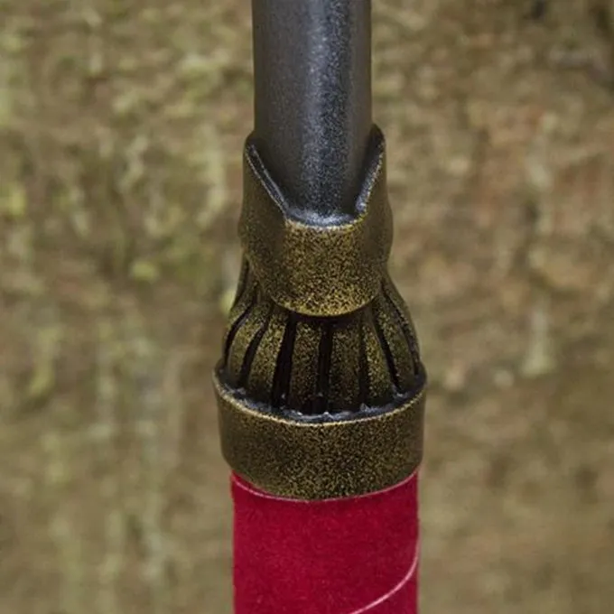 Dieser Guandao ist für LARP-Kämpfe gemacht und perfekt für asiatische LARP-Charaktere. Die Waffe ist naturgetreu lackiert, sodass der Kopf wie Metall aussieht. Der Schaft ist mit rotem Leder umwickelt, damit er bequem in der Hand liegt. An der Stelle, an der sich Schaft und Kopf treffen, ist ein goldenes Detail zu erkennen. Für zusätzliche Authentizität können Sie ein textiles Tuch an den Guandao anbringen, um den Feind abzulenken.