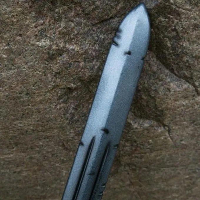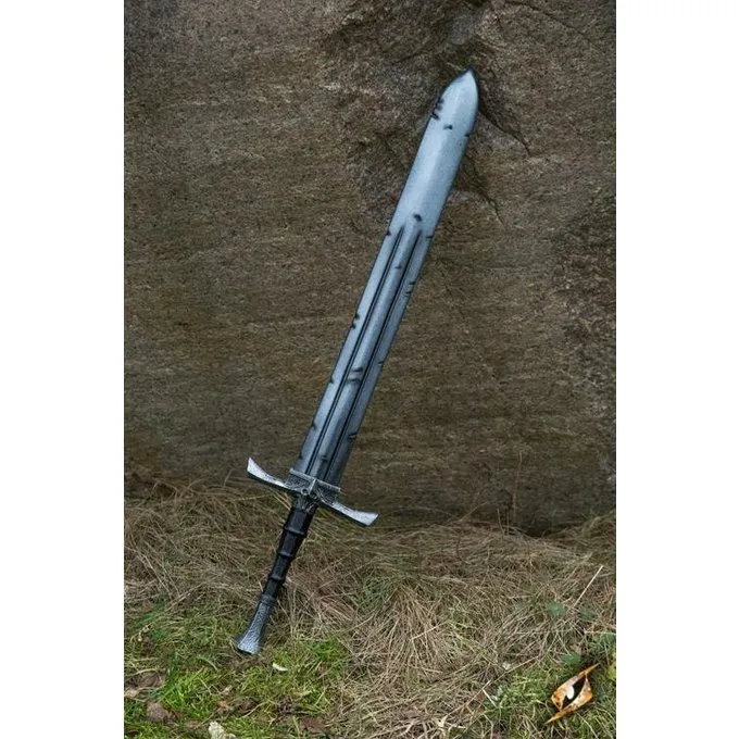 Material: Fiberglas, EVA-Schaum, Latex / Geeignet für LARP Schlachten / Länge: 85 cm / Grifflänge: 12,5 cm / Klingenlänge: 59 cm / Klingenbreite: 7 cm / Breite der Parierstange: 19 cm / Umfang Griff: 10 cm / Gewicht: 363 Gramm