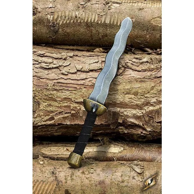 Schlange Dolch, eine LARP Waffe. Dieser Dolch hat einen goldfarbenen Knauf und eine Parierstange mit einem blauen Farbton. Die Klinge hat eine Stahlfarbe. Die Gesamtlänge dieses Dolches beträgt ca. 45 cm mit einer Klinge von 27 cm und einem Griff von 12 cm. Es wiegt ca.. 125 g. Diese Waffe hat einen flexible Glasfaserkern mit einer Schicht aus Schaum, der dauerhaft mit einer starken Schicht aus Latex beschichtet ist. Seine Spitze ist für eine optimale Sicherheit mit Kevlar verstärkt. Der Dolch ist handgefertigt und von Hand gefärbt, so sehr Stück ist ein Unikat. Aufgrund des Materials empfehlen wir nicht, es in der Sonne für längere Zeit verlassen. Epic Armoury Dolche erfüllen hohe Sicherheitsanforderungen.