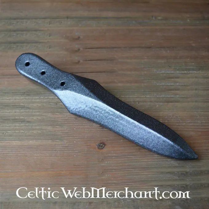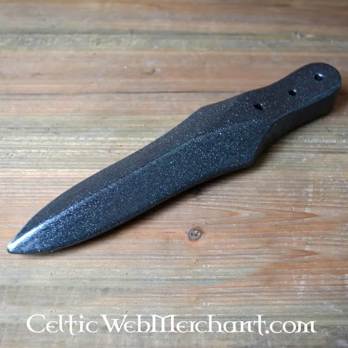 Messer mit 3 Löchern, ein Wurfmesser aus Schaumstoff. Die Länge dieser LARP Waffe beträgt ca. 24 cm mit einem Griff von ca. 8 cm. Die Klinge ist ca.. 16 cm lang und 6 cm breit ist. Die Waffe ist aus strapazierfähigem Schaumstoff mit einer Beschichtung aus starken Latex. Das Wurfmesser ist handgefertigt und von Hand gefärbt, so dass jedes Stück ein Unikat ist. Aufgrund des Materials empfehlen wir nicht, es in der Sonne für längere Zeit verlassen. Alle Epic Armoury Waffen hohe Sicherheitsstandards erfüllen