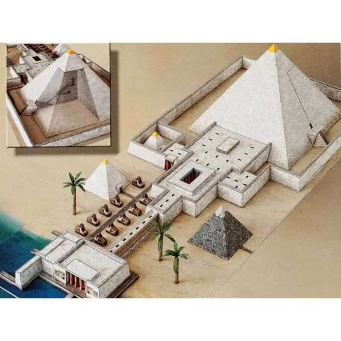 Diese Pyramide ist nach der Pyramide von Giseh gemacht. Sie können die Pyramide auf die andere Seite schauen. Rund um die Pyramide wurde ein kompletter Tempelkomplex errichtet. Diese besteht aus ca.. drei verschiedene kleinere Pyramiden.