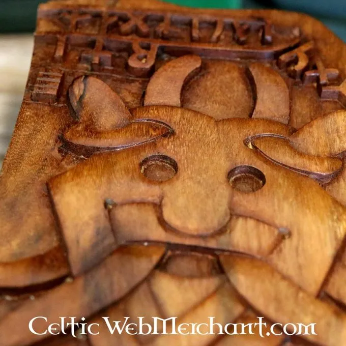 Die Mitte dieser Dekoration zeigt ein styled Odin, der obere Gott der Wikinger. Neben der obere Schneide Runen eingraviert ist.